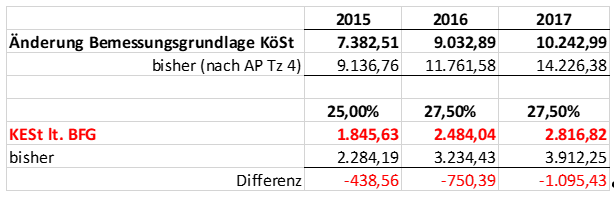 Die Haftung betreffend Kapitalertragsteuer für die Jahre 2015 bis 2017 errechnet sich daher wie folgt: