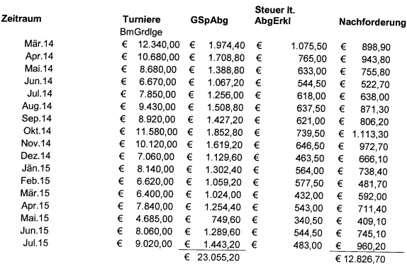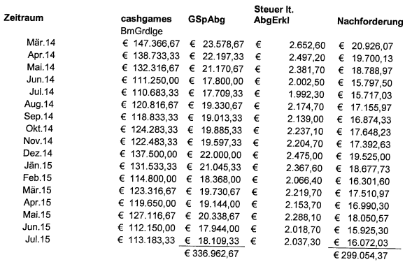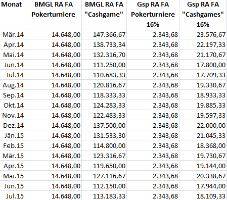 "Berechnung der Glücksspielabgabe: