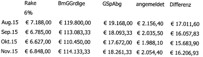 4. über die Beschwerde vom 16.11.2015 gegen die Bescheide des Finanzamtes für Gebühren, Verkehrsteuern und Glücksspiel gemäß § 201 BAO vom 13.10.2015 betreffend Festsetzung der Glücksspielabgaben für Kartenpokerspiele in Form von Turnieren und Cashgames gemäß § 57 Abs. 1 GSpG für die Zeiträume März 2014, April 2014, Mai 2014, Juni 2014, Juli 2014, August 2014, September 2014, Oktober 2014, November 2014, Dezember 2014, Jänner 2015, Februar 2015, März 2015, April 2015, Mai 2015, Juni 2015, Juli 2015