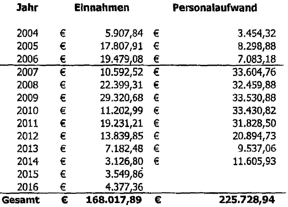 - der Gesamtverlust seit dem Jahr 2004 EUR -306.524,90 betrage und es seit 1998 nur ein Mal (im Jahr 2006) einen Gewinn in der Höhe von EUR 2.276,49 gegeben habe,