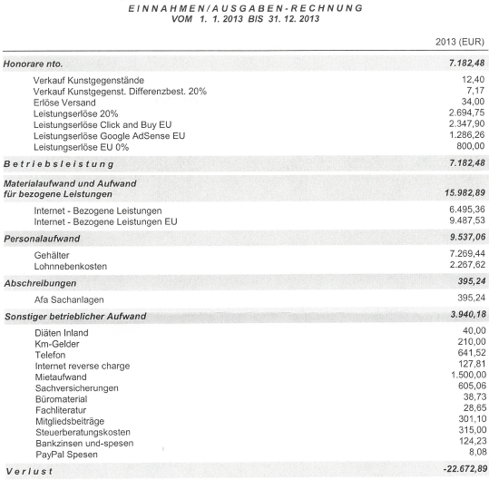Dieser Webshop erwirtschaftete im Zeitraum 2009-2016 bislang Verluste von rund EUR 160.000,00, wenn man diesem die hauptsächlich auch dort angefallenen Personalkosten zurechnet, jedoch unter Außerachtlassung weiterer Kosten, die sich jedoch aufgrund der unterlassenen Trennung der verschiedenen Betriebe in der Einnahmen-/Ausgabenrechnung des Bf. nicht eindeutig zuordnen lassen, was angesichts der Verhältnisse der Erträge zu den Aufwendungen bei beiden Betrieben im Ergebnis jedoch gänzlich vernachlässigt werden kann (vgl. Tabelle unter Punkt II. I. 4. "Betriebsprüfung").
