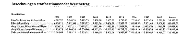 1) Es wurde nur ca. die Hälfte der erzielten Umsätze im Rechenwerk des Unternehmens erfasst.