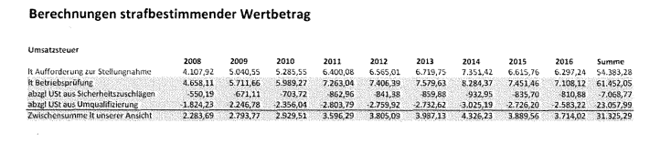 In der Rechtfertigung vom 3.4.2019 ist zur Berechnung des strafbestimmenden Wertbetrages zur Umsatzsteuer das umfangreichste Gegenvorbringen der Beschuldigten enthalten: