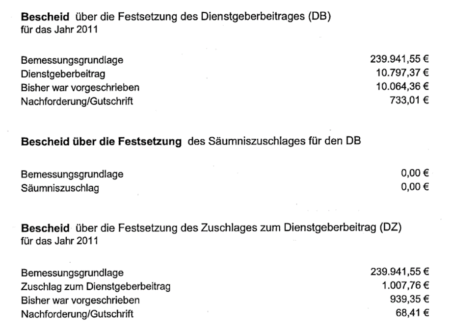 Das Bundesfinanzgericht hat durch den Richter***1*** in der Beschwerdesache ***Bf1***, ***Bf1-Adr***, vertreten durch Moore Salzburg GmbH Wirtschaftsprüfungs- und Steuerberatungsgesellschaft, Innsbrucker Bundesstraße 126, 5020 Salzburg, über die Beschwerde vom 30. August 2016 gegen die Bescheide des Finanzamtes Salzburg-Stadt vom 16. August 2016 betreffend Dienstgeberbeitrag 2011, Steuernummer ***BF1StNr1*** zu Recht erkannt: