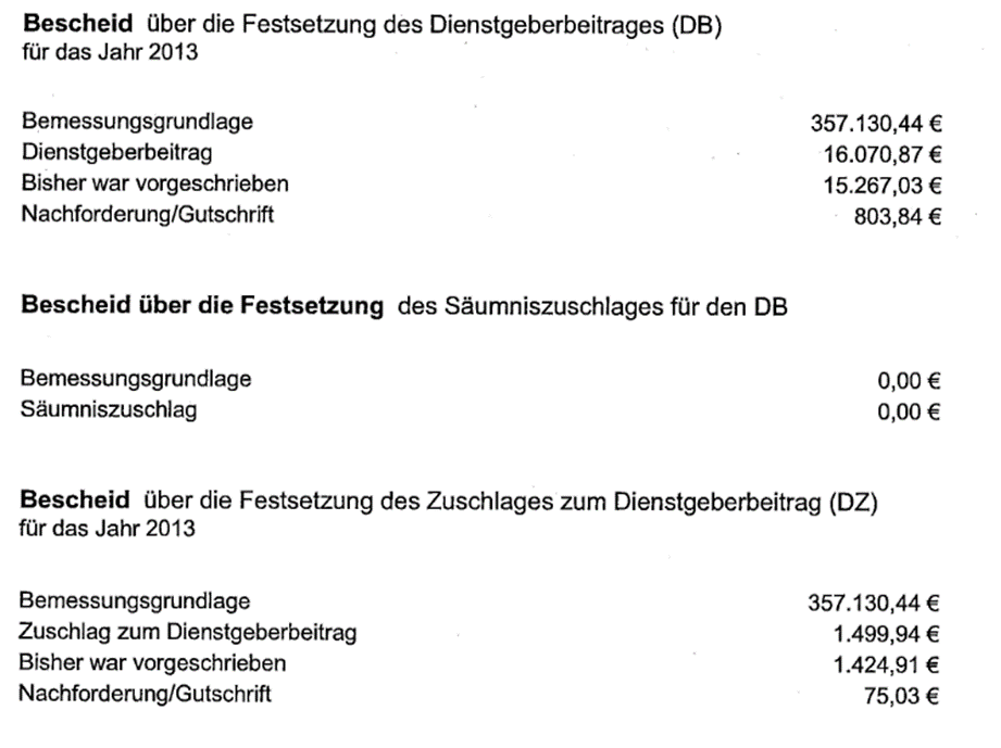 Der Beitrag des Dienstgebers ist nach Abs 3 von der Summe der Arbeitslöhne zu berechnen, die jeweils in einem Kalendermonat an die im Abs 1 genannten Dienstnehmer gewährt worden sind, gleichgültig, ob die Arbeitslöhne beim Empfänger der Einkommensteuer unterliegen oder nicht (Beitragsgrundlage).