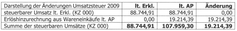 Betreffend die Umsatzsteuer 2009 ergeben sich somit folgende Änderungen: