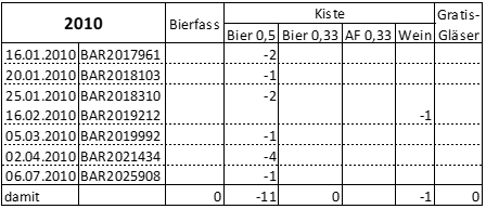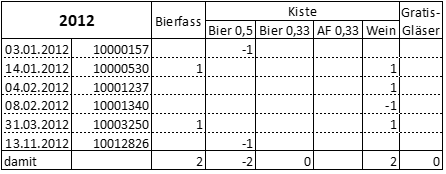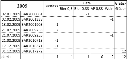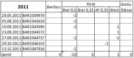 Zur Schlüssigkeit von Biereinkäufen über die offiziell besorgte Menge hinaus wird auf die Darstellung unter 2012 verwiesen.