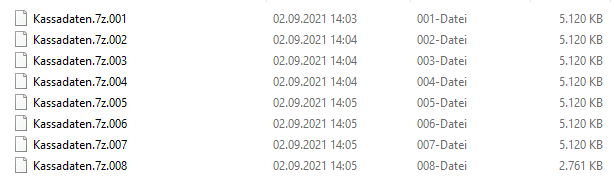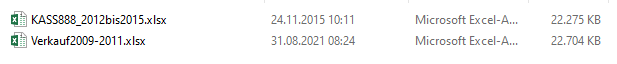 Mit mehreren Mails vom 2. September 2021 übermittelte das FA über telefonische Aufforderung durch das FA zwei Excel-Dateien mit dem Datenbestand der Lieferantin von 2009 bis 2011 (ohne Zeitstempel) und von 2012 bis 2015 (mit Zeitstempel) in gezippter Form (8 Dateien).