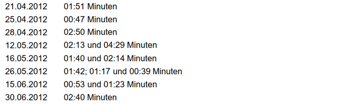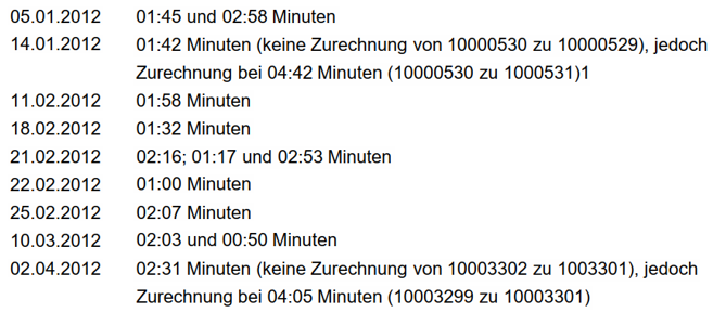 fehlen - bei fortlaufenden VorgNr - mehrere VorgID. Zur Vermeidung jeder Unsicherheit scheidet der erkennende Senat diesen Vorgang zur Gänze aus (Markierung orange in Anlage D 2012).