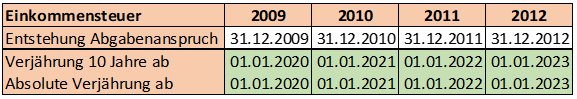 Die Bescheide bezüglich des Jahres 2009 ergingen zur Vermeidung der absoluten Verjährung schon vor Abschluss der Außenprüfung im Dezember 2019. Nach deren Abschluss (Außenprüfungsbericht vom 31. März 2020) erließ das FA auch die Bescheide für die drei Folgejahre.