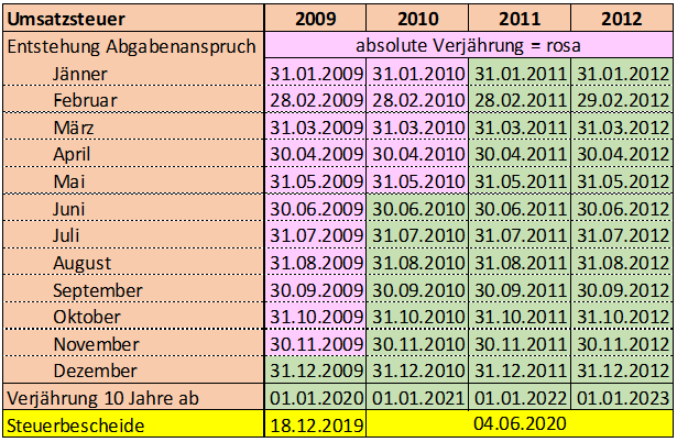 Obwohl der Außenprüfungsbericht mit 31. März 2020 datiert ist, wurden die Bescheide für die Jahre 2010 bis 2012 erst am 4. Juni 2020 erlassen.