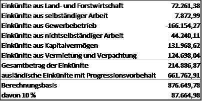 Daraus ergibt sich, dass die strittigen Auslandeinkünfte nicht nur für die Berechnung des Progressionsvorbehaltes heranzuziehen sind, sondern auch als Basis für die Berechnung der 10%-Grenze zu dienen haben.