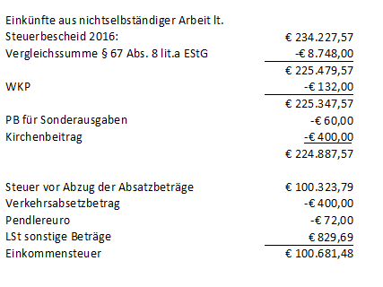 Die Einkommensteuer 2016 berechnet sich daher wie folgt: