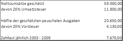 Daraus ergeben sich die dafür notwendigen umsatz- und einkommensteuerlichen Bemessungsgrundlagen 2003 bis 2007 wie in Anlage A dargestellt. Dem widersprachen weder FA noch Bf.