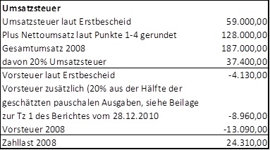 Tabelle: USt-Zahllast 2008 lt. BVE