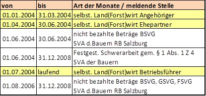 Der Bf. war zumindest bis Mitte 2000 mit einem Holzschlägerungsunternehmen aktiv. Mit *** 2000 wurde über sein Vermögen der Konkurs eröffnet, der erst mit **** 2004 wieder aufgehoben wurde. Ab Juli 2004 bewirtschaftete er den Hof seiner Mutter und unterlag mit dieser Tätigkeit der entsprechenden bäuerlichen Pflichtversicherung.
