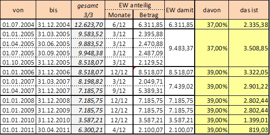 Tabelle: E.a.Gw. 2003+2004 lt. BVE