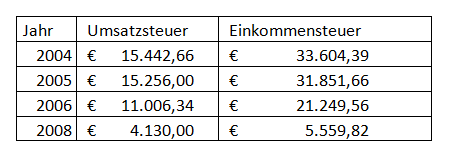 Berechnungen des Finanzamtes - Einkommensteuer (Gewinn aus Gewerbebetrieb) nach Jahren:
