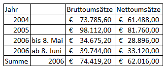 Daraus errechnen sich folgende Nettoumsätze: