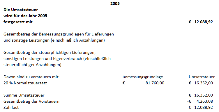 Das Einkommen des Bf. und die Einkommensteuer errechnen sich daher wie folgt, die Einkommensteuer 2005 wird wie folgt festgesetzt: