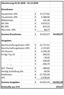 Die Einkünfte aus Vermietung und Verpachtung setzen sich daher wie folgt zusammen: