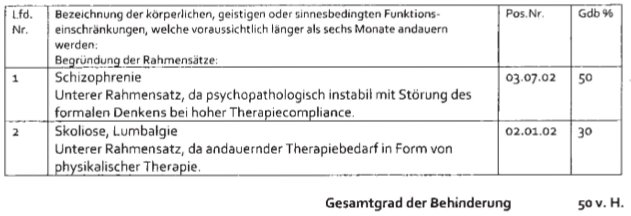 Begründung für den Gesamtgrad der Behinderung: