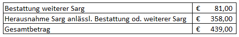 Mit einer zweiten Rechnung vom 6.4.2011 wurden Ihnen für die Exhumierung und Wiederbestattung folgende Kosten in Rechnung gestellt: