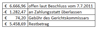 Der Betrag lässt sich aus der letzten offenen Forderung laut Beschluss vom 7.7.2011 wie folgt ableiten: