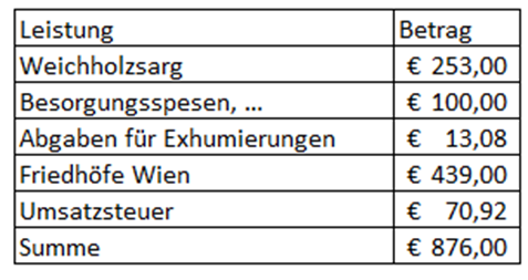 Die Summe dieser Beträge entspricht dem von den Friedhöfen Wien in Rechnung gestellten Betrag: