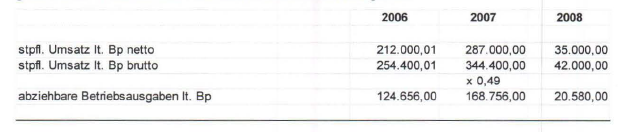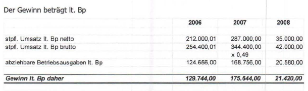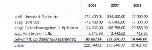Die USt-Zahllasten dürften jedoch etwa gestimmt haben, falsch waren nur die Höhe der Umsätze, die tatsächlich viel höher waren und die berücksichtigten Vorsteuern, die aber in Wahrheit hörer als geschätzt waren. Im Ergebnis ergab sich jedoch ungefähr eine richtige Zahllast bei der Umsatzsteuer.