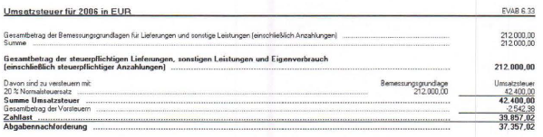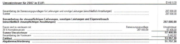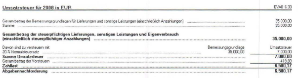 Angemerkt wird, dass Umsatzsteuervorauszahlungen geleistet worden sind am