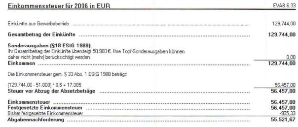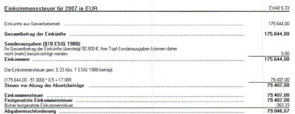 Angemerkt wird, dass durch die Veranlagung der Einkommensteuer 2007 die zuvor (auf Basis der Einkommensteuerveranlagung 2004) vorgeschriebenen Einkommensteuervorauszahlungen iHv 9.559,09 gutgeschrieben worden sind.