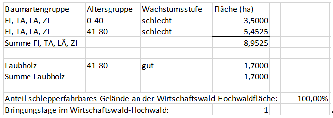 Die forstwirtschaftlich genutzten Flächen teilen sich ein wie folgt: