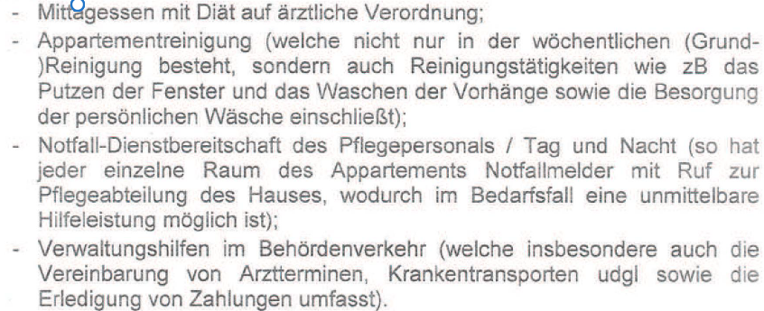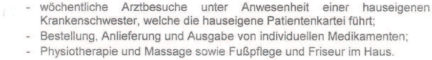Des Weiteren würden den Bewohnern des Hauses - ohne zusätzlicher Verrechnung -folgende Leistungen zur Verfügung stehen: