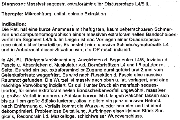 Der Bericht des OA Dr. A., Herz Jesu-KH vom 6.12.2001 über die Operation der Bf. an der Wirbelsäule vom Vortag (Beilage 2/a) lautet wie folgt: