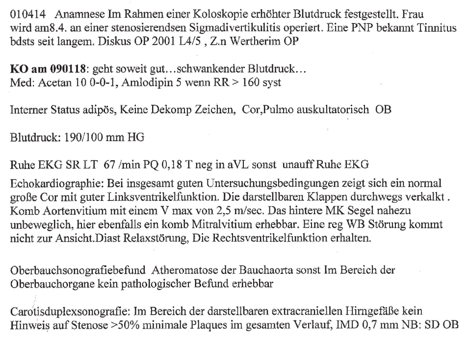 Dieser Krankengeschichte wurde die nachfolgend abgelichtete Stellungnahme der Bf. beigefügt: