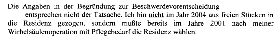 Der Annahme, die Appartementkosten wären Folge eines Verhaltens, zu dem die Bf. sich aus freien Stücken, d.h. freiwillig entschlossen hätte, war zu erwidern, dass die Inanspruchnahme der Leistungen in der Seniorenresidenz Folge des Pflegebedarfs nach der Operation an der Wirbelsäule im Jahr 2001 und dem Bandscheibenvorfall als Ursache für die Erkrankung an axonaler PNP gewesen war (siehe die der Beschwerde beigelegten Krankengeschichte; die Schreiben der Hausärztin der Bf. vom 19.12.2019 und 30.07.2020). Das Hinzukommen des "kombinierten Aortenvitiums" zu den übrigen Erkrankungen ("axonale PNP", "Inkontinenz") ließ keinen Zweifel an der Verschlechterung des Gesundheitszustands der Bf. im Jahr 2018 bestehen und schloss damit die Annahme, die Bf. wäre trotz Behinderung im Jahr 2018 in der Lage gewesen, den Haushalt selbst zu führen, und auf eine Betreuung, wie sie in einem Alters- oder Pflegeheim typisch ist, nicht angewiesen, aus. Aufgrund der Aktenlage war daher der Auszug der Bf. aus dem Appartement in der SRBV mit 4.04.2020 lediglich als unmittelbare Folge der mit dem angefochtenen Abgabenbescheid für das Jahr 2018 vorgeschriebenen Nachzahlung von Abgaben in Höhe von 8.549,00 € - einer Abgabenzahllast in einer für eine pensionierte Beamtin beträchtlichen Höhe - zu erkennen.