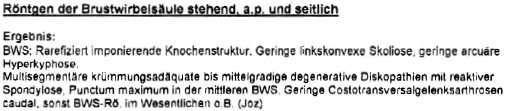 Aus dem nachfolgenden Schaubild ist der Röntgenbefund zur Wirbelsäule vom 25.04.2017 ersichtlich: