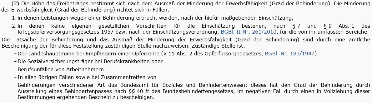 - Nach Ausführungen zum § 35 Abs. 2 EStG 1988 stellte das BFG unter Bezugnahme auf die Pflegestufe 1 als Bestätigung für den zwischen den Verfahrensparteien außer Streit stehenden notwendigen Hilfe- und Betreuungsbedarf der Bf. von mehr als 65 Stunden fest, dass eine rückwirkende Ausstellung eines Behindertenpasses zwar grundsätzlich nicht möglich wäre, jedoch würde bei einer Behinderung als Folge eines Ereignisses (Unfall, Operation, Spitalsaufenthalt) der festgestellte Grad der Behinderung nach LStR 839f auch für steuerliche Zwecke rückwirkend bis zum Zeitpunkt des Ereignisses gelten, wenn das Bundesamt die Behinderung rückwirkend festgestellt hätte (z.B. BFG 05.04.2018, RV/7105950/2017; UFS 15.11.2012, RV/0582-I/11). Vor diesem Hintergrund liege es an der Bf., das Zusammenspiel der Diagnosen "Kombiniertes Aortenklappenvitium", "Axonales PNP: Polyneuropathie" und "Zn DP 14 L5 mit Massenprolaps 2001" als Ursache der Pflegebedürftigkeit und somit die Zwangsläufigkeit (§ 34 Abs. 3 EStG 1988) der Heimkosten zu dokumentieren und eine Stellungnahme zum Punkt 3 dieses Schreibens samt, wenn möglich, Beilage aller Beweismittel, die geeignet seien, eine rückwirkende Ausstellung eines Behindertenpasses zu begründen, an das BFG zu übermitteln.