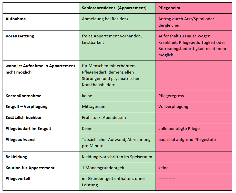Pkt.2.6 Unterschied Seniorenresidenz - Pflegeheim