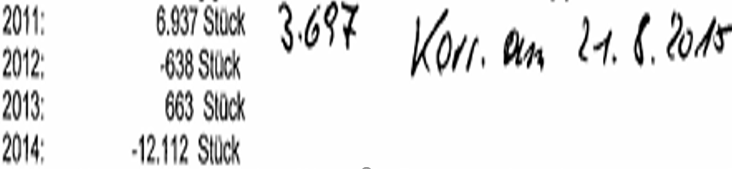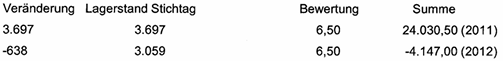 Differenz 11-13: 3.722 Stück mit einem Wert von 6,50 € netto hochgerechnet, gerundet und auf die Jahre 2011-2013 gleichmäßig verteilt worden wäre.