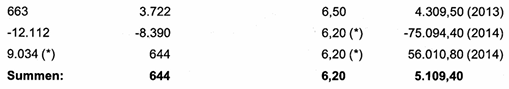 (*) ER 9 (Rg# 150158) vom 29.1.2015 über Lieferungen 12/2014 an Bf. über 9.034 St. a 6,20€.