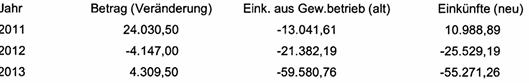 die nunmehrigen Verluste aus Gewerbebetrieb [11.364,17 € (2012), 51.580,76 € (2013)]
