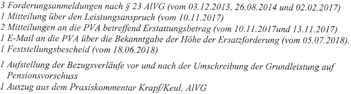 Für den konkreten Fall bedeutet dies, dass der Zufluss der bescheidmäßig im Jahre 2017 für den Zeitraum ab 1.11.2013 unbefristet zuerkannten Invaliditätspensionszahlungen im Jahr des Anspruches (2013, 2014, 2015 bzw. 2016) anzunehmen war. An der Erfassung der Pensionszahlungen in dem Jahr, für das der Anspruch besteht, ändert sich infolge ihrer auf Grund des Ersatzanspruches des AMS nachträglichen Einbehaltung durch die PVA nichts. Aus § 23 AIVG 1977 geht in diesem Zusammenhang hervor, dass die Leistungsverrechnung zwischen der PVA und dem AMS im Wege einer Legalzession erfolgt ist.