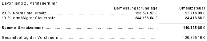 Der Nachforderungsbetrag entspricht auch dem Nachforderungsbetrag in der Selbstanzeige. Die Differenz zu den Nachforderungen ergibt sich aus USt-Gutschriften.