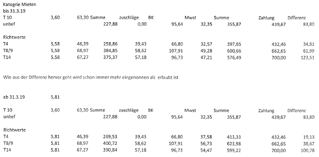 Top 14 hatte nur 660 € Altmieterträge, nun konnte ab 2006 auf 4.200 € gesteigert werden, ab 2011 werden 4.358 € kassiert.