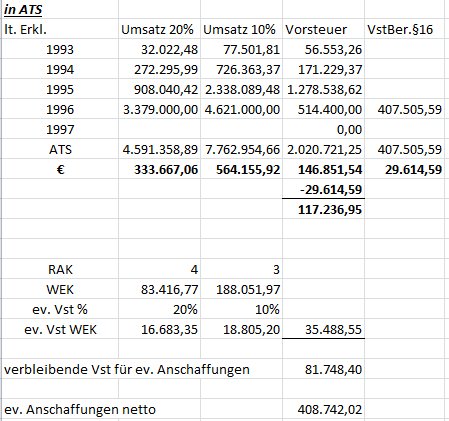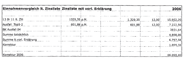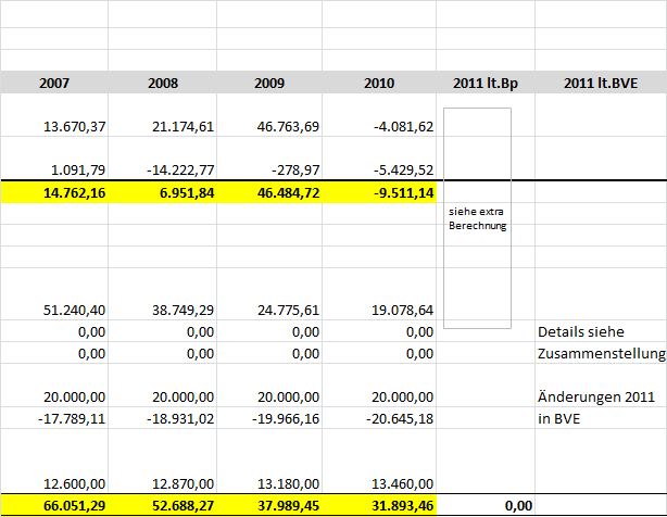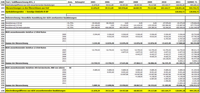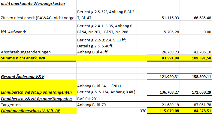 - Rechenfehler in den Einnahmen/Ausgaben –Rechnungen (Additions- bzw. Subtraktionsfehler), wurden richtiggestellt (siehe Anhang zum Bp-Bericht „ad. c.7"), die Betriebsprüfung ging bei ihren weiteren Berechnungen von den richtiggestellten Zahlen aus.