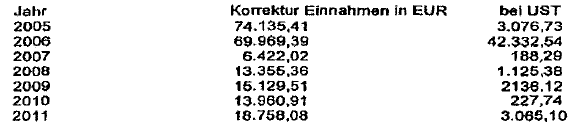 - tatsächliche Erfassung der Einnahmen aus Vermietung von Sendemasten und Werbetafeln sowie Hausverwaltertätigkeiten ist nicht feststellbar.