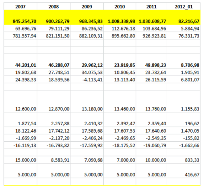 - Einnahmen aus Plakatwerbung und Sendemasten lt. vorgelegter Unterlage 2008 betreffend für alle Jahre mit geringer Indexanpassung angesetzt;
