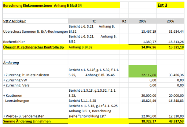 Die von der Betriebsprüfung vorgenommenen Änderungen im Wesentlichen: Einnahmen: